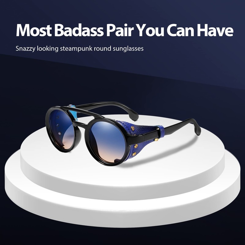 - Round Retro Style Sunglasses with Side Shield: Uniquely stylish round steampunk retro style shades with leather side shields thar are strikingly dope. You will never be unnoticed with its unique gothic style. Can match almost all your outfits, this is one of the best shades you could have.