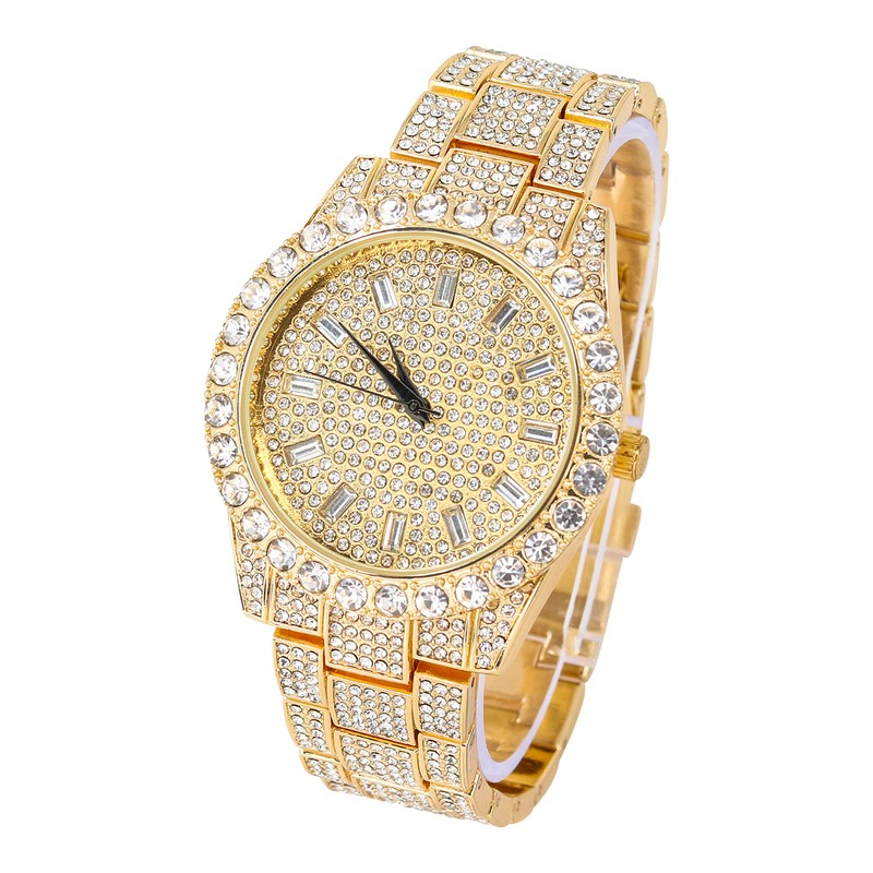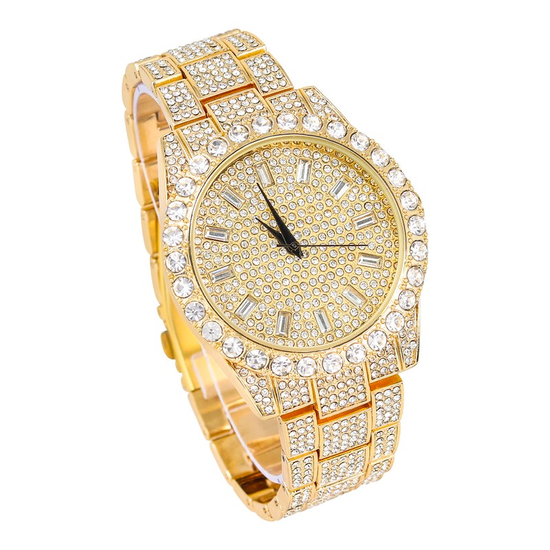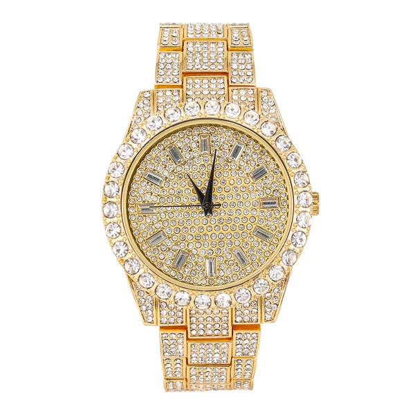 - Iced Out Men's Timepiece: 44mm Baguette Dial Watch with Diamond Accented Band in 14k Gold Tone - A Stunning and Luxurious Statement Piece.