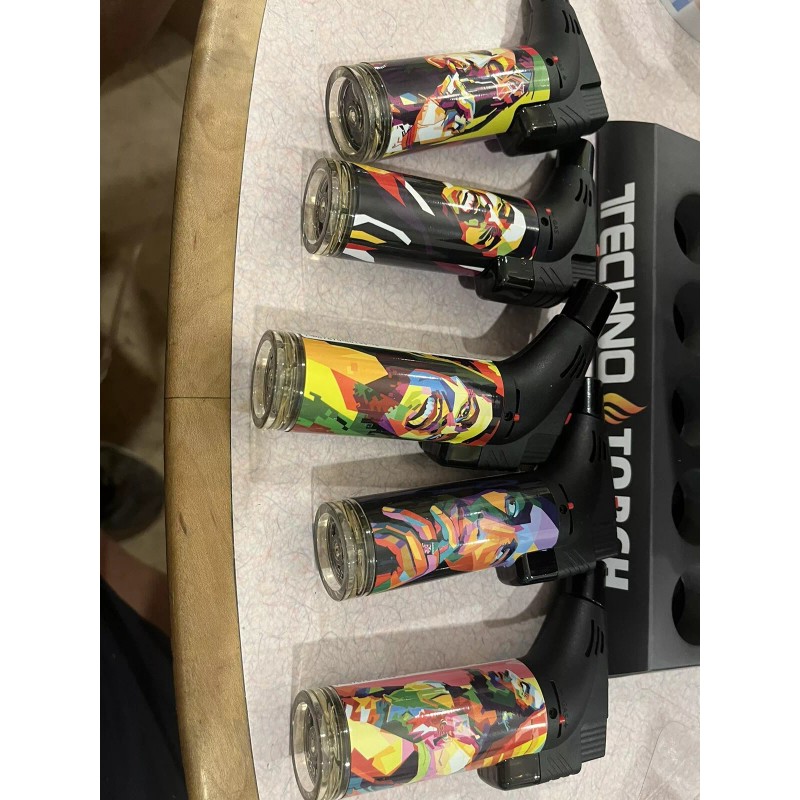 Techno torch lighter Full-size Torch Adjustable Flame Bob Marley Desig Lot Of 15