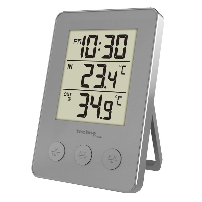 Technoline WS9175 - Bürothermometer, Thermometer, digitales Thermometer mit Innentemperatur, Außentemperatur, inklusive AußensenderTX205, 76 x 22 x 110 mm