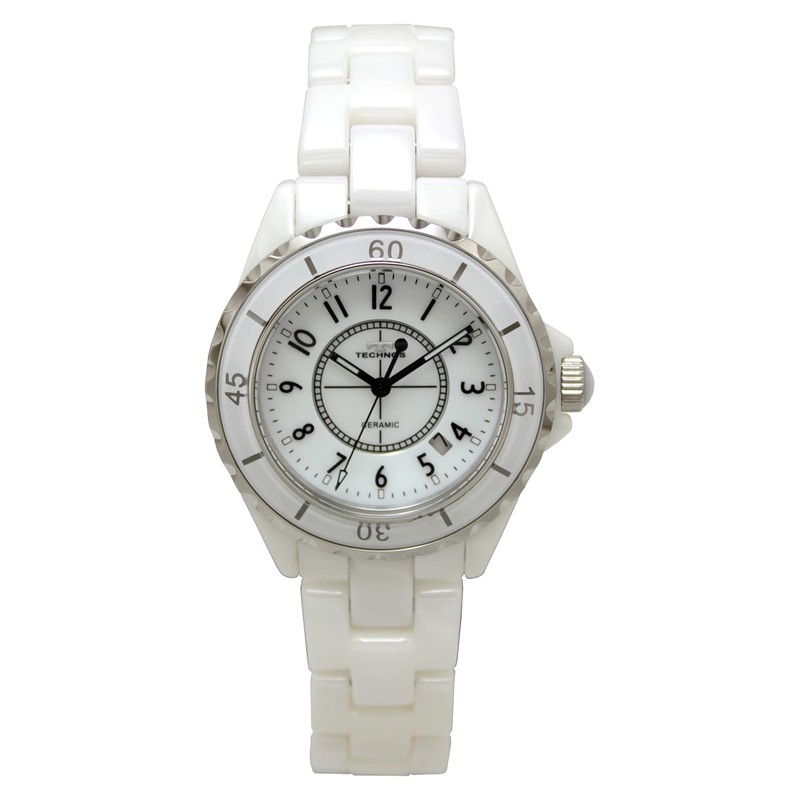 Technos Date Ceramic Wristwatch T9B82TW Men's White, white, Bracelet Type