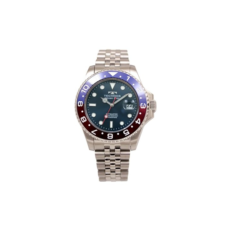 Technos T9C11SN Men's Wristwatch, Water Resistant to 10 ATM, Silver, blue, Bracelet Type