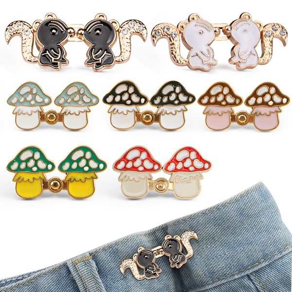 TECHPLUS Instant Pant Waist Tightener - Squirrel Mushroom Button Pins,Tool-free Adjustable Loose Waist Buckle for Women Men Kids