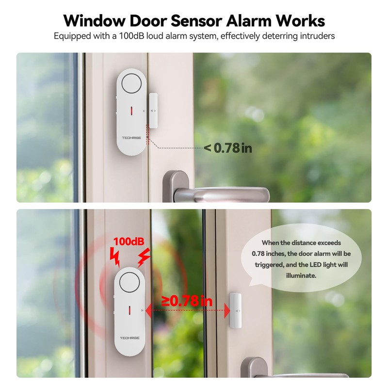 TechRise Door and Window Alarm,Door Alarms for Kids Safety,Easy-to-Install Door Sensor,3-Level Volume Adjustment, Suitable for Doors,Windows,Drawers,Garages,Apartment and Home Safety
