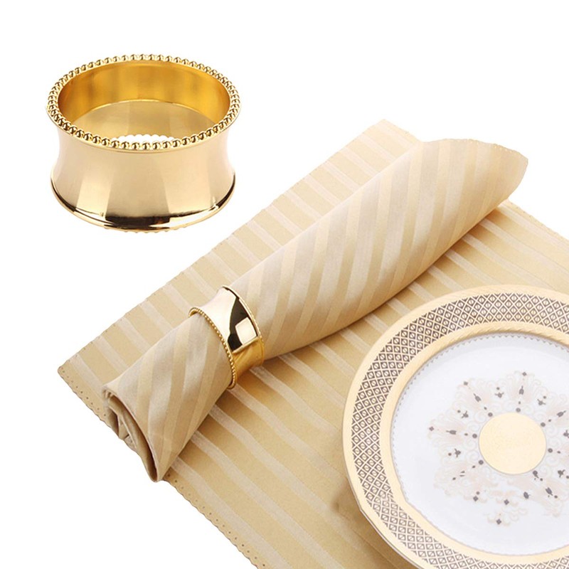 Techson Napkin Rings Set, Dinner Napkin Buckle Holder, Handmade Natural Metal Adornment, Creative Party Gatherings Wedding Table Decor (Gold Beaded Edge, 6 PCS)