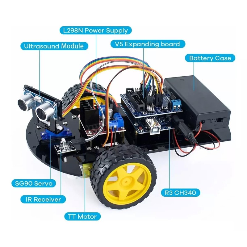 - Kit completo: El kit de chasis de 2WD para automóvil robot inteligente de TECHVIDA es un paquete completo que incluye una placa UNO Set r3, un módulo ultrasónico y un control remoto, lo que permite a los usuarios comenzar fácilmente con sus proyectos de robótica.