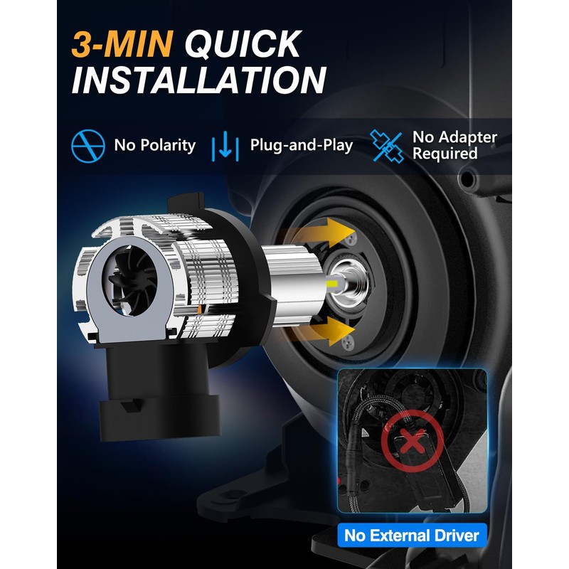• PLUG AND PLAY - The 9005 fog light bulbs utilize the same 1:1 interface and ratio design as the original halogen lamps, the new one-piece bulb design allows for quick and easy installation, and the built-in driver eliminates the need for an external adapter for true plug and play.