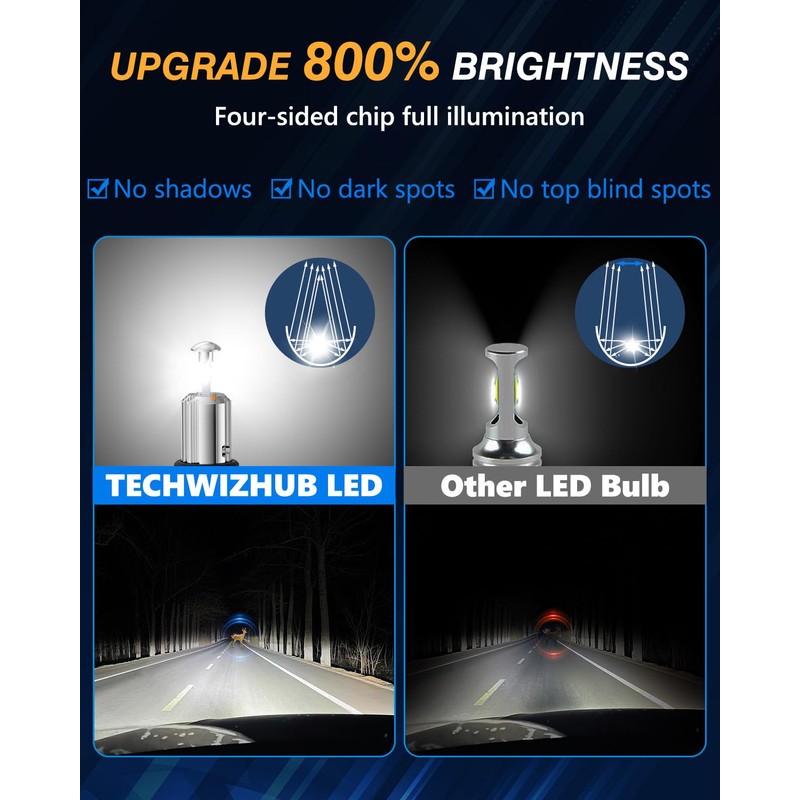 TechWizHub 9005/HB3 Fog Bulbs, Upgrad 800% Bright 30000LM 6500K Cool White High Low Beam Bulbs, Real 1:1 Size No Shadows 9005 LED Lights, CANbus-Ready, Plug and Play,IP68 Waterproof,Pack of 2