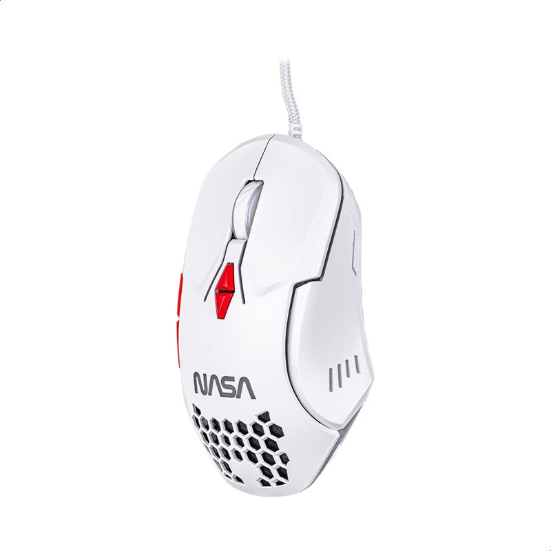 TECHZONE Mouse Gamer RGB Edición NASA Alámbrico, 6 Botones, Color Blanco con DPI's 800-6000