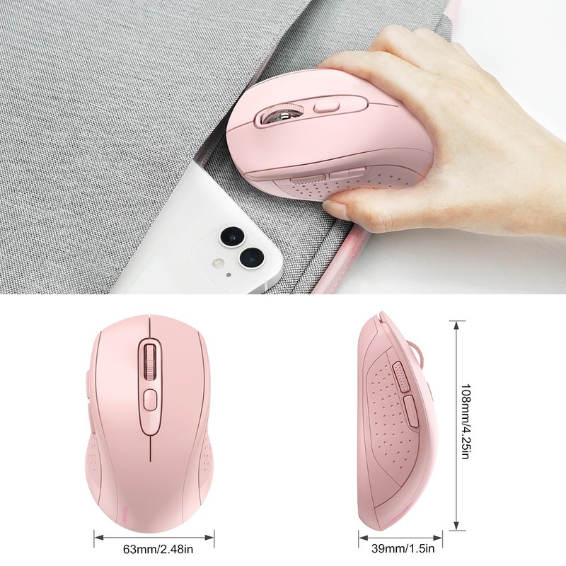 TECKNET - mouse inalámbrico para computadora, 2.4G inalámbrico Bluetooth para portátil, mouse 2 en 1 (BT 5.0/3.0+2.4Ghz), 6 niveles ajustables 4000 DPI, mouse portátil USB para mano pequeña y mediana