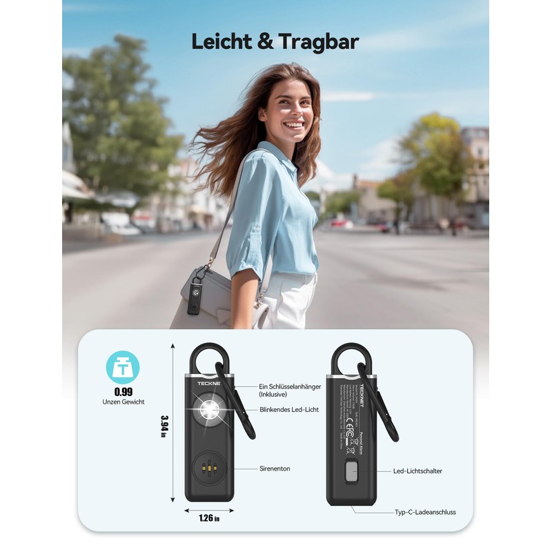 - Leicht zu tragenTECKNET Sicherheitsalarm wiegt nur 28 Gramm und ist mit einem Schlsselring ausgestattet, der nahtlos an Handtaschen, Rucks?cken, Grteln, Schlsseln oder Armb?ndern befestigt werden kann. Egal wohin Sie gehen, k?nnen Sie ihn einfach mitnehmen und so sicherstellen, dass Sicherheit immer in Reichweite ist.