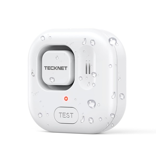 TECKNET Water Leak Detectors for Home, 120dB Water Sensor Alarm Leak Detector, IP66 Waterproof, Water Leak Detectors for Bathroom, Sink, Laundry, Window, Basements, Kitchens(1 Pack, Battery Included)