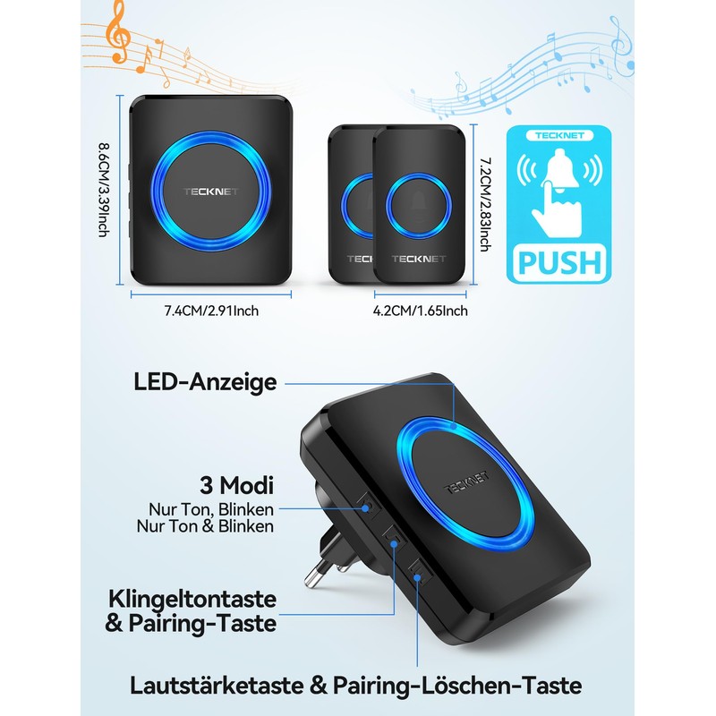 - 【36 Months Warranty】 We offer a 36 month warranty (only registration) and friendly 24-hour customer service. The package contains a TECKNET wireless bell sets and instruction manual (English language not guaranteed)