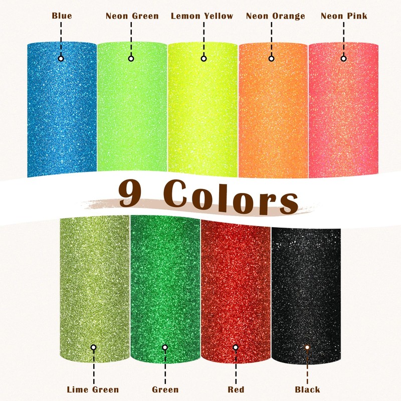 Unlock endless creativity with Glitter Puff HTV vinyl sheets in 9 vibrant shades – from red for holiday tees to purple for Halloween costumes. Each 12”x10” sheet fits all vinyl cutting machines, eliminating messy rolls and wasted material. Perfect for crafters, sellers, or DIY parents!