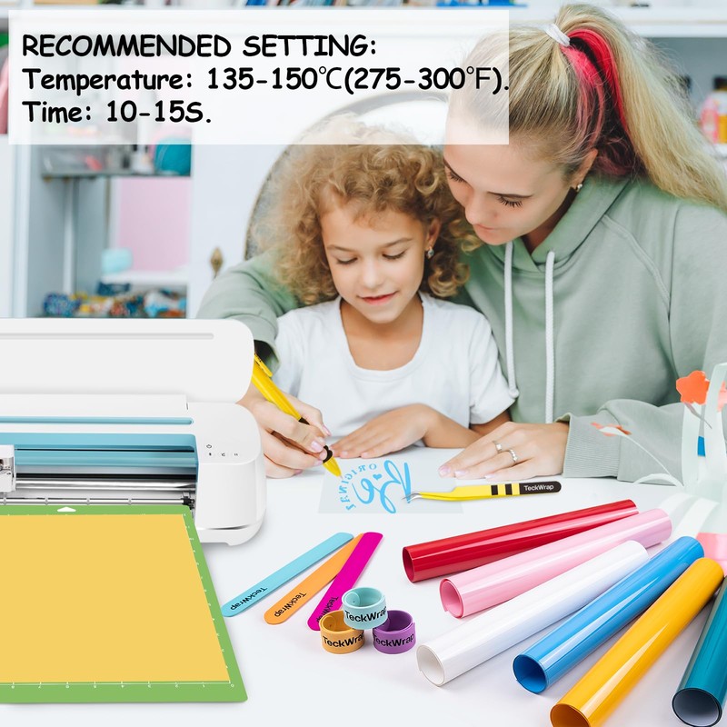 Whether you're a hobbyist or a small business owner, this bundle is perfect for creating personalized apparel, gifts, and accessories. Designed with durability and convenience in mind, the TECKWRAP Heat Transfer Vinyl Bundle is your go-to solution for heat transfer vinyl crafting.