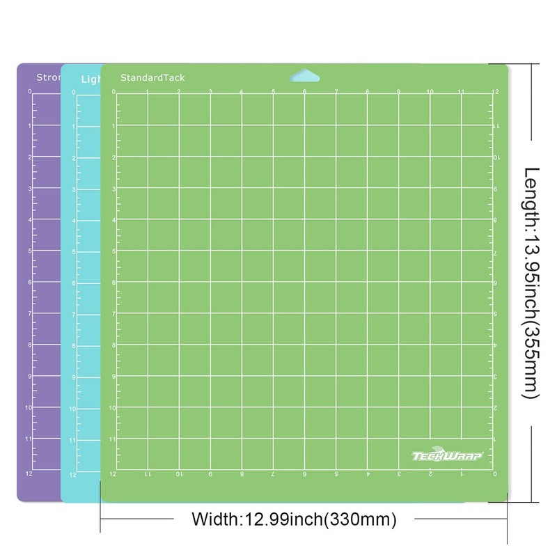 - PACKAGE INCLUDED - One 12" x 12" standardgrip adhesive cutting mat, one 12" x 12" lightgrip adhesive cutting mat, and one 12" x 12" stronggrip adhesive cutting mat.