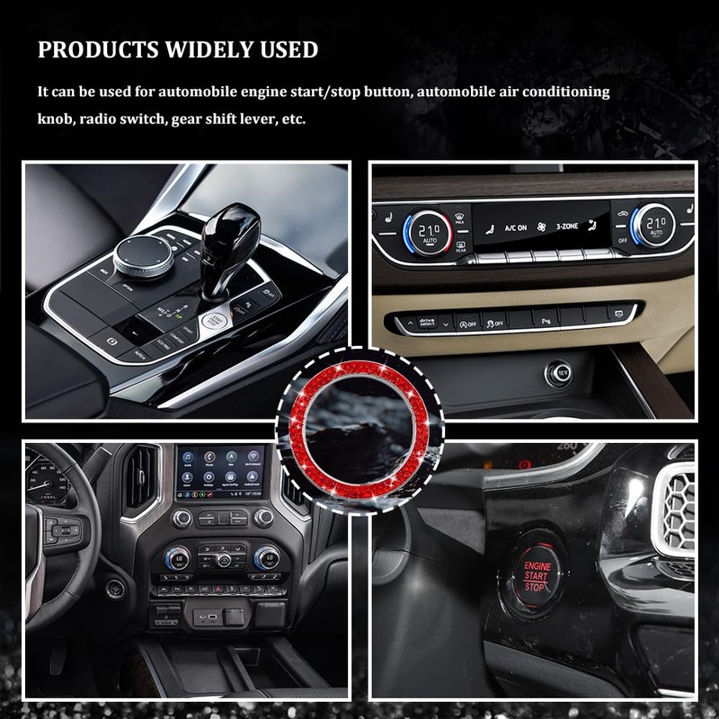 - [Exquisite Design] : This car bling crystal rhinestone engine start ring stickers is set with 2 rows of dazzling diamonds, the perfect sparkle to break up the original interior. The sparkling push start button sticker is sure to be a sight in the car, shows your personality. Our sparkling push start button sticker is an ideal gift for your friends and families who loves to decorate cars