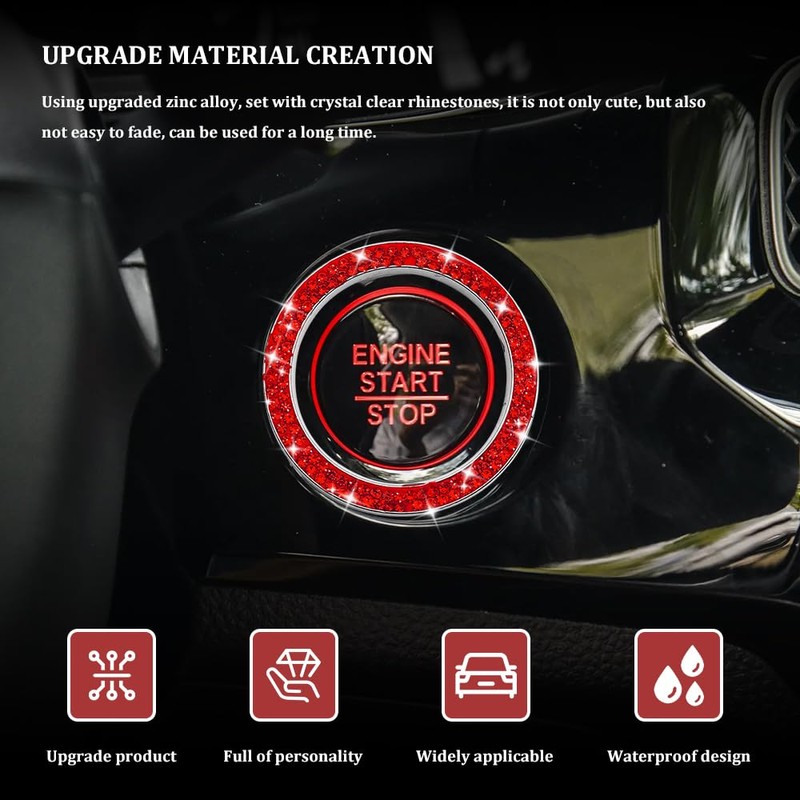 - [High Quality] : This push start button bling ignition ring sticker is made of high quality zinc alloy with sparkling crystal rhinestones. It not only has a lovely shape and high quality, but also is not easy to fade and can be used for a long time