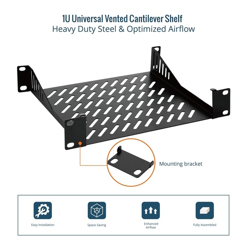 - Universal 10'' Compatibility: This 1U vented rack shelf with mounting brackets is designed to fit all standard 10" server racks and cabinets - ideal for IT equipment, data networking gear, AV components, routers and switches