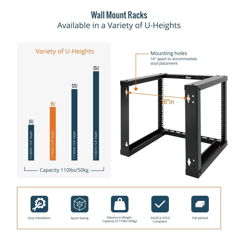 - 【Easy Installation】: EIA/ECA-310-E complaint; 9U Wall Mount Rack provides corresponding accessories, instructions and video explanation for reference