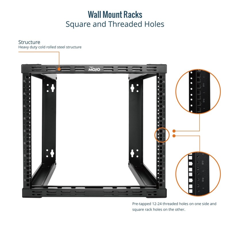 - 【Widely Applicable】: Open Frame Rack with both 12-24 threaded holes and square holes; Available in 6U/9U/12U/15U and 15.8in/24.8in depth