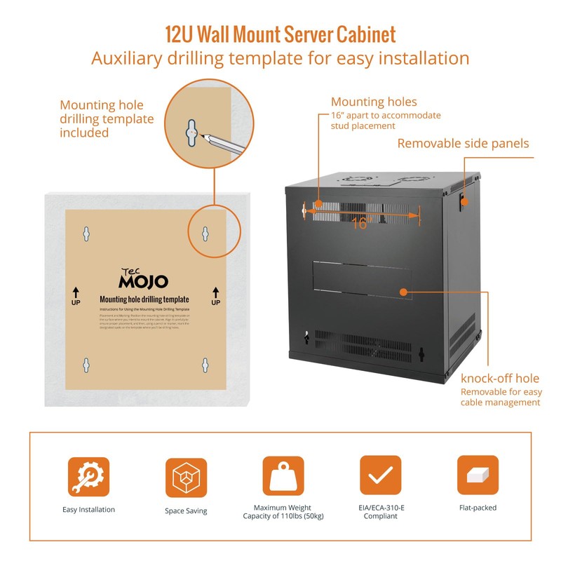 - Save valuable floor space: 12U wall mount server cabinet Dimensions: 24.25" H x21.65" W x17.72" D