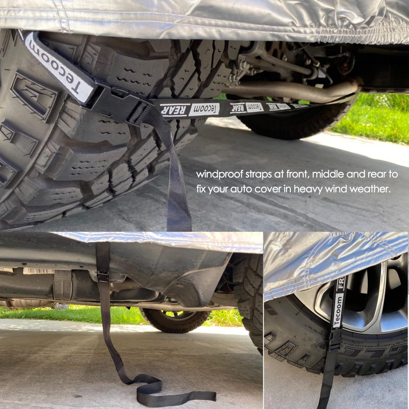 Thanks to the heavy-duty layers, it not only provides long term use but also prevents dirt and dust from ruining your car's paint. We use a soft fleece layer that prevents the full car cover from scratching of your car's finish allowing you to safely use it daily. We designed our outdoor waterproof cover for cars with strong belts and buckles that can handle even the windiest of days to stay firmly in place and keep your car protected making it ideal for anyone that wants reliable protection for their car around the clock throughout the year.