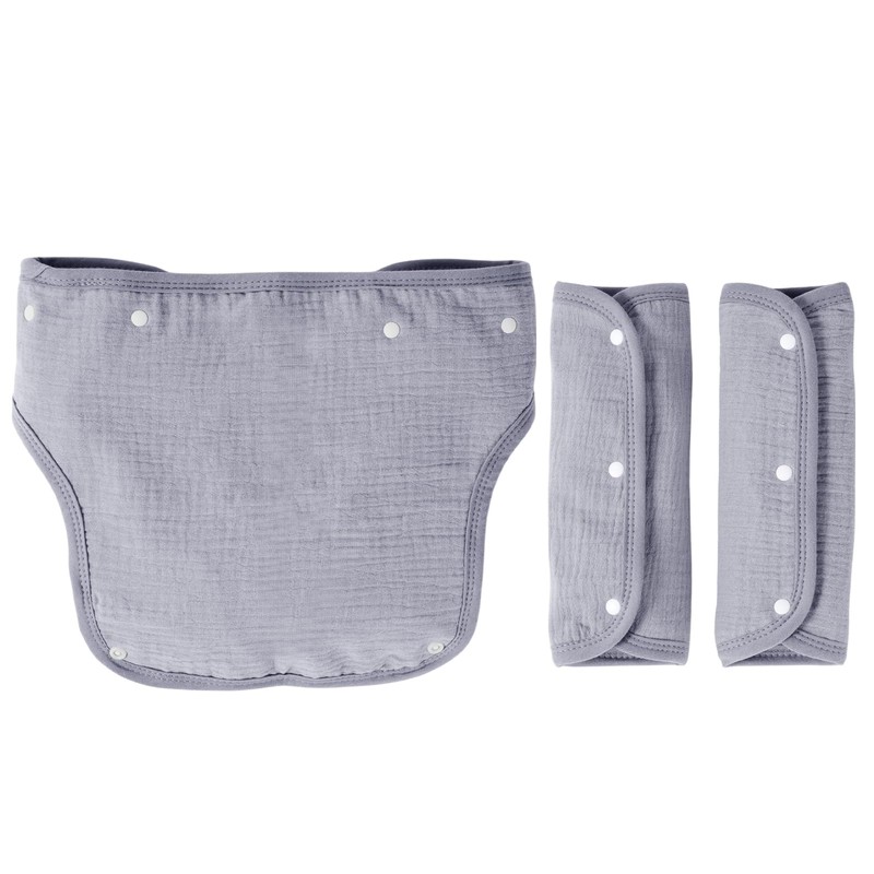 tecopeco 3-Piece Baby Carrier Straps, Drool Cover, 3-Piece Set, Fluffy, 100% Cotton, Gauze, Plenty of Water Absorption, Chest Plate, Belt Cover, Drool Pad, Solid Color, Simple (Gray)