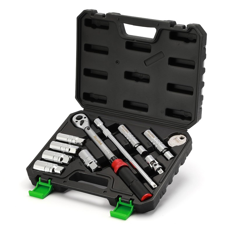 - ✅【Size Include】10-45 Ft-Lbs (13.5-61Nm) click torque wrench, 12pt magnetic swivel spark plug socket: 14mm, 16mm, 6pt non-magnetic spark plug socket: 9/16-inch, 5/8-Inch, 3/4-Inch, 13/16-Inch, 18mm, spark plug gapper, universal joint and 10" long extension bar. It's a high quality set for DIY spark plug removal and installs.