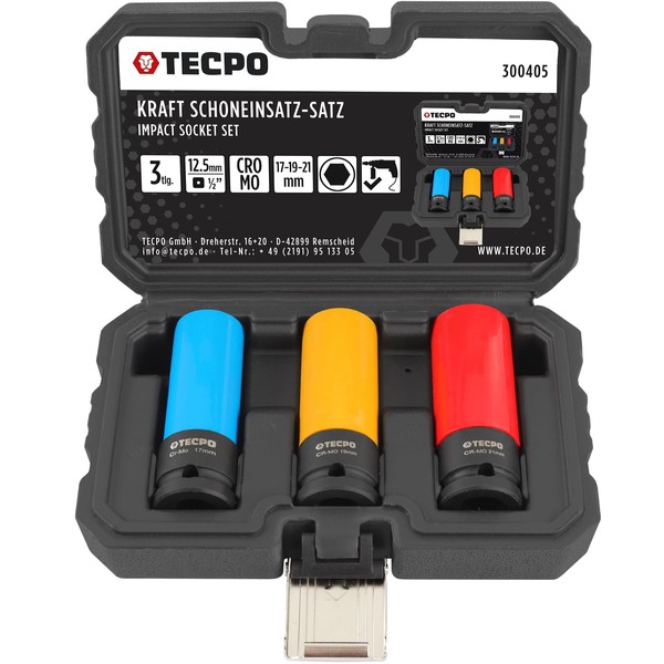 TECPO Kraft Protective Inserts 3-Piece Aluminium Rims Nut Set Socket Spanner Set Sockets SW 17 mm 19 mm 21 mm
