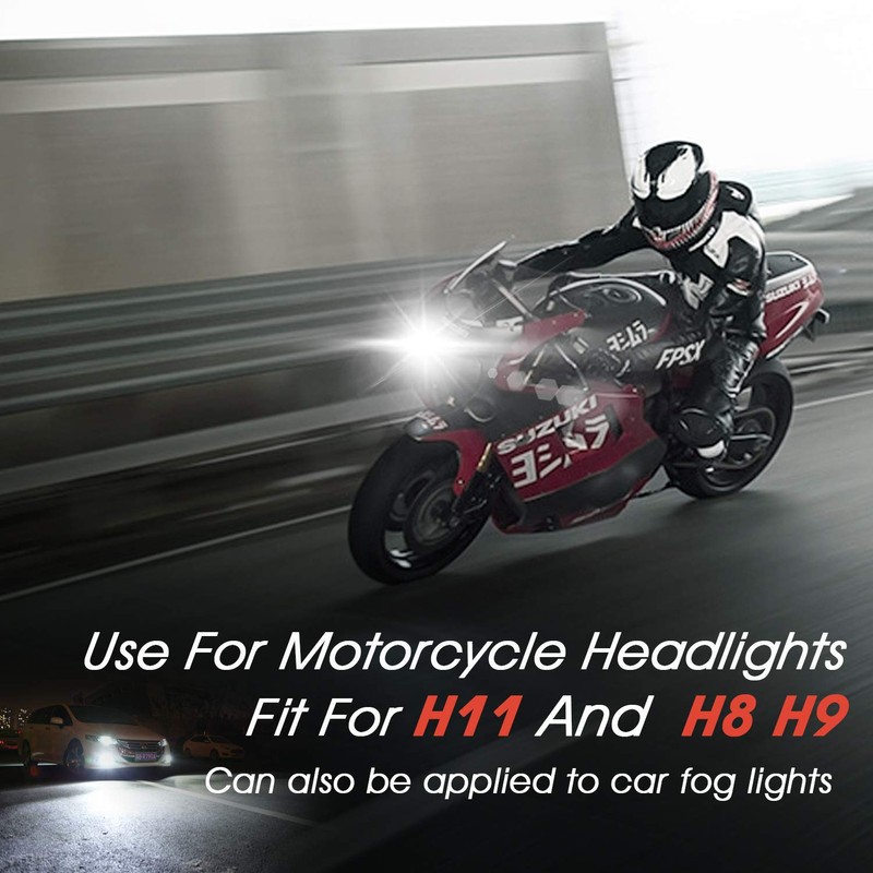 - 【Mini Original Design】1:1 original halogen design, universal fit for H11(12V 55W), H8(12V 35W) and H9(12V 65W) halogen headlight bulb. Upgrade your motorcycle dim yellow halogen lamp to cool LED extremely look.