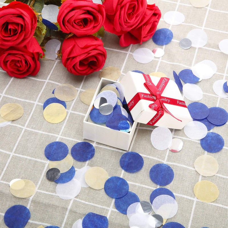 Round tissue paper table confetti dots for wedding birthday party decoration, 1.76 oz/ 50 g, navy blue gold confetti