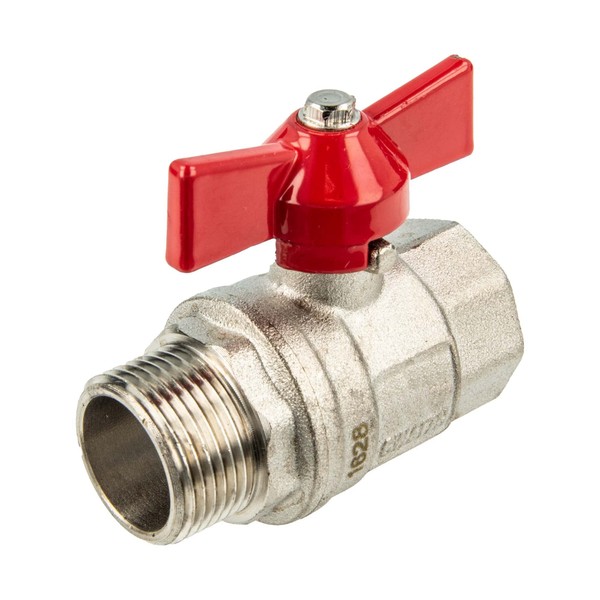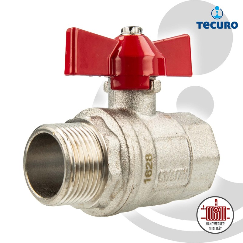 - tecuro brass ball valve with wing handle, size: 1/2 inch (DN 15), internal x external thread, cylindrical according to ISO 228-2