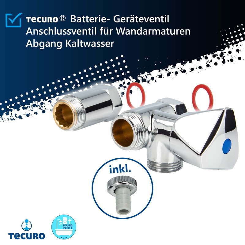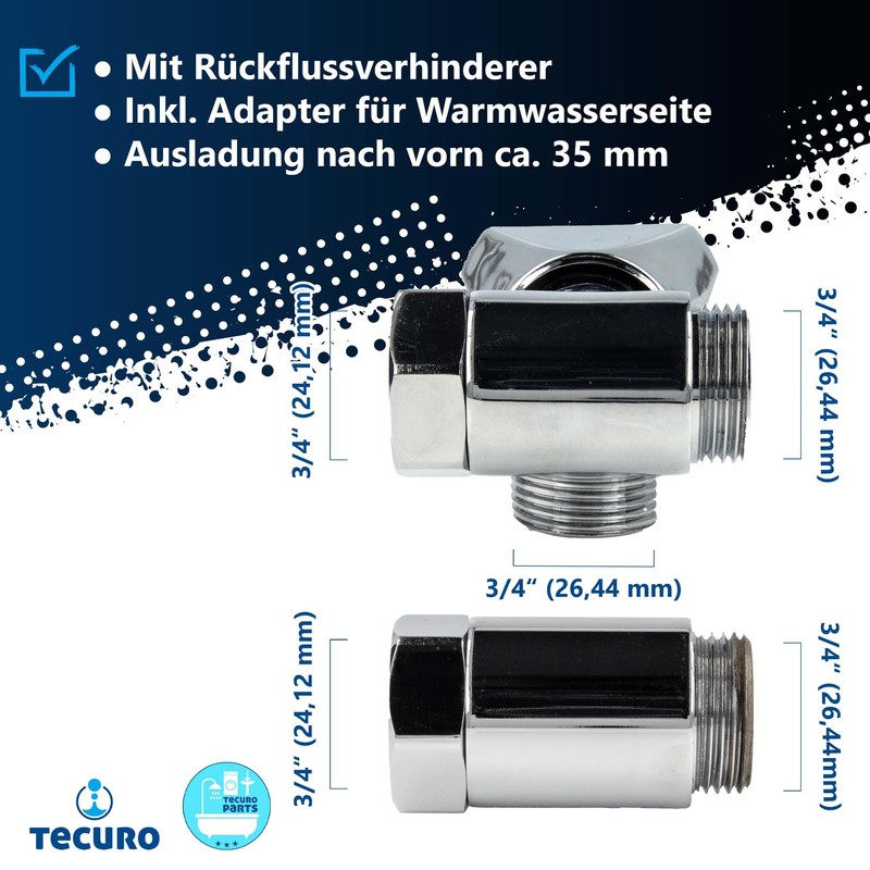 tecuro Device Valve with Triangular Hood Handle for Washing and Dishwasher Connection 3/4 Inch Chrome-Plated