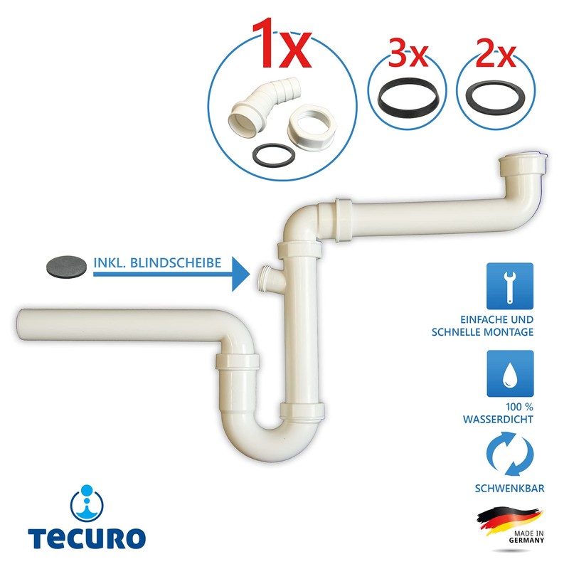 - tecuro space-saving drain set / odour trap for sinks: This trap is used when space is needed under the kitchen sink for a waste collector or low pressure under-sink unit, for example