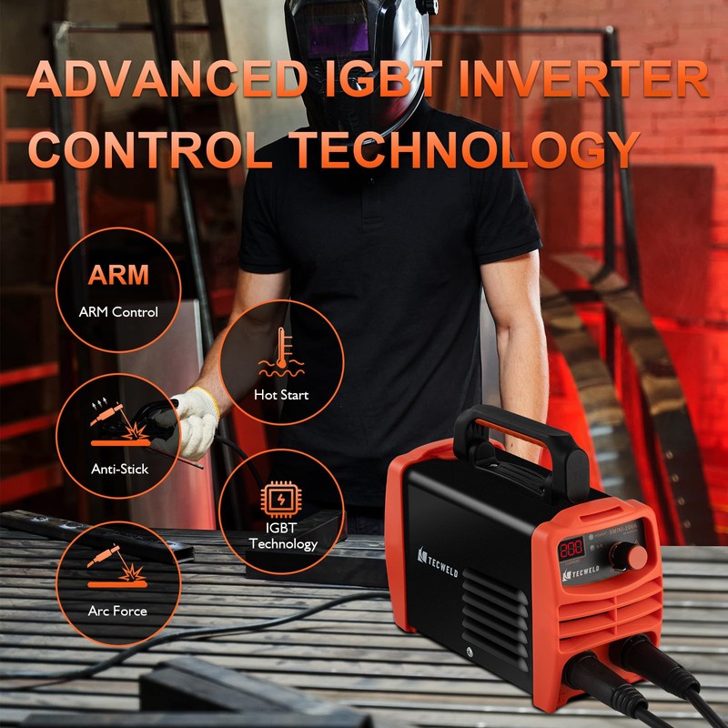 TECWELD 200A Stick Welder 110V, Mini Portable Inverter MMA Welder with Synergic Control, Digital Display, Hot Start, Arc Force, Anti-Stick - Includes Helmet,Gloves,20 Rods & Accessories