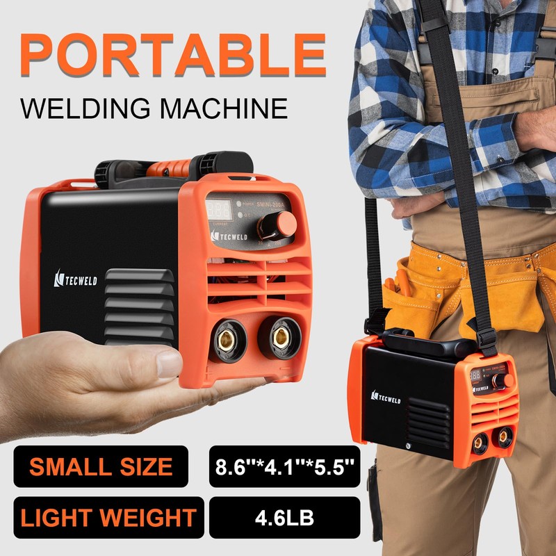 - 💪200A POWER & PORTABLE DESIGN: Weld metals up to 1/4" thick (0.06-0.2") including stainless steel, alloy steel, carbon steel, and copper. Compact size (8.6x4.1x5.5") and ultra-lightweight (5 lbs) with shoulder strap make it easy to carry for jobs anywhere – high altitude, indoors, or outdoors. Enjoy extended welding sessions without overheating, backed by a solid 60% duty cycle for professional results.