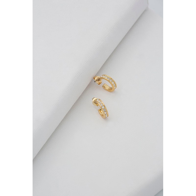 - CRYSTAL HOOP EARRINGS SET: These crystal huggie hoop earrings are small and dainty with a row of shimmering crystals and gold tone plating.