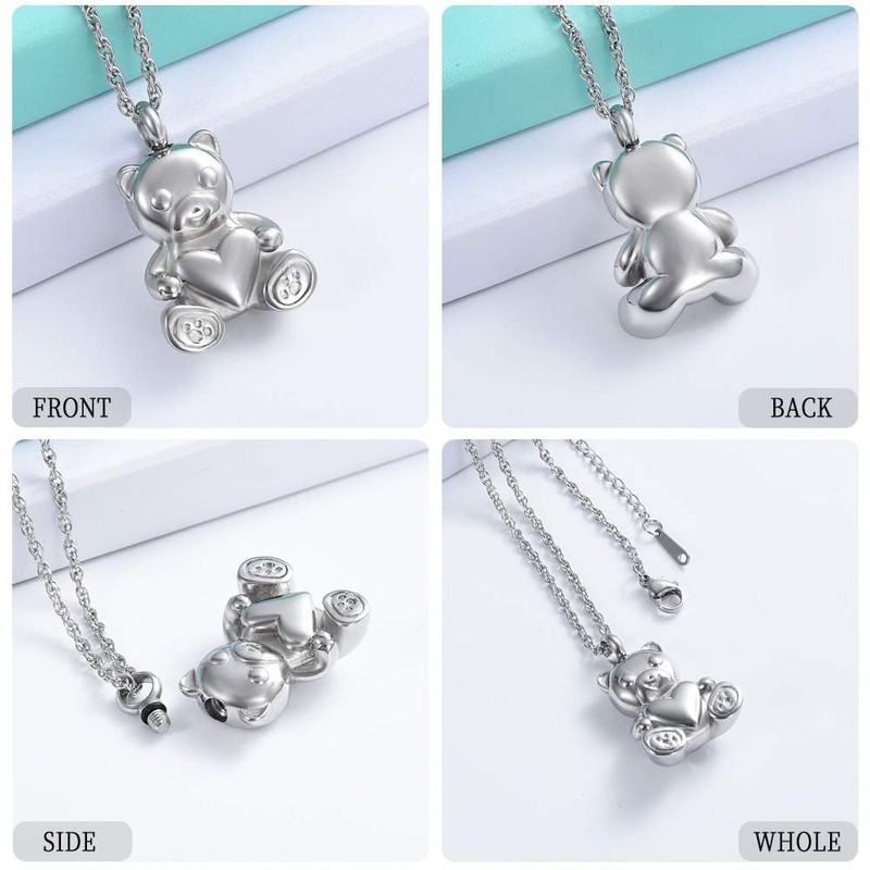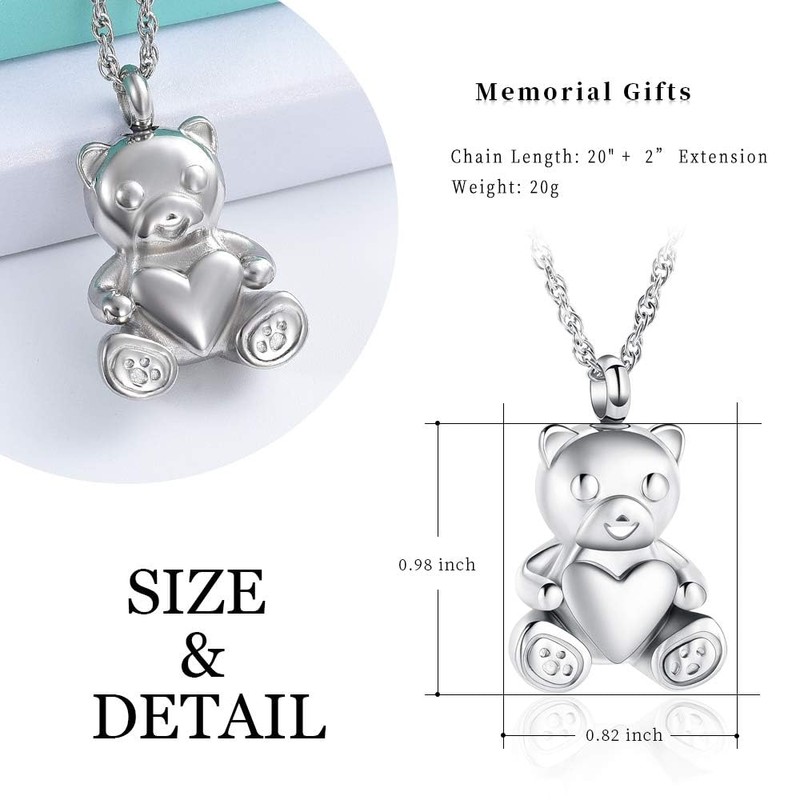 Teddy Bear Cremation Urn Nekclaces Ash Jewellery for Men Women Heart Memorial Urn Keepsake Locket Pendant Ashholder