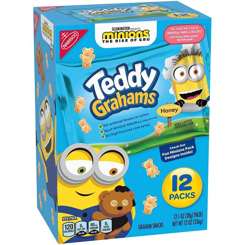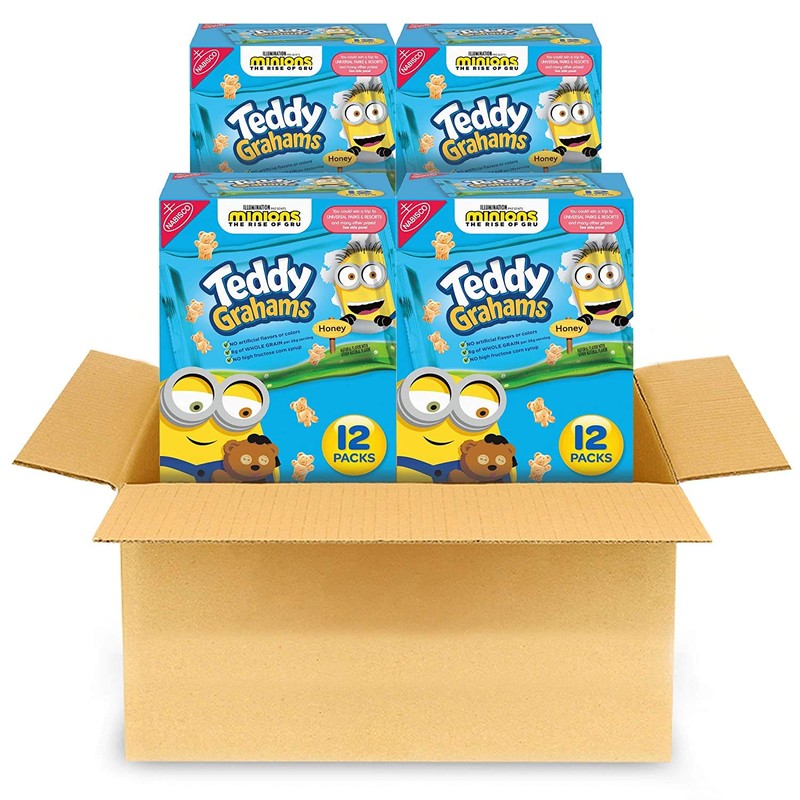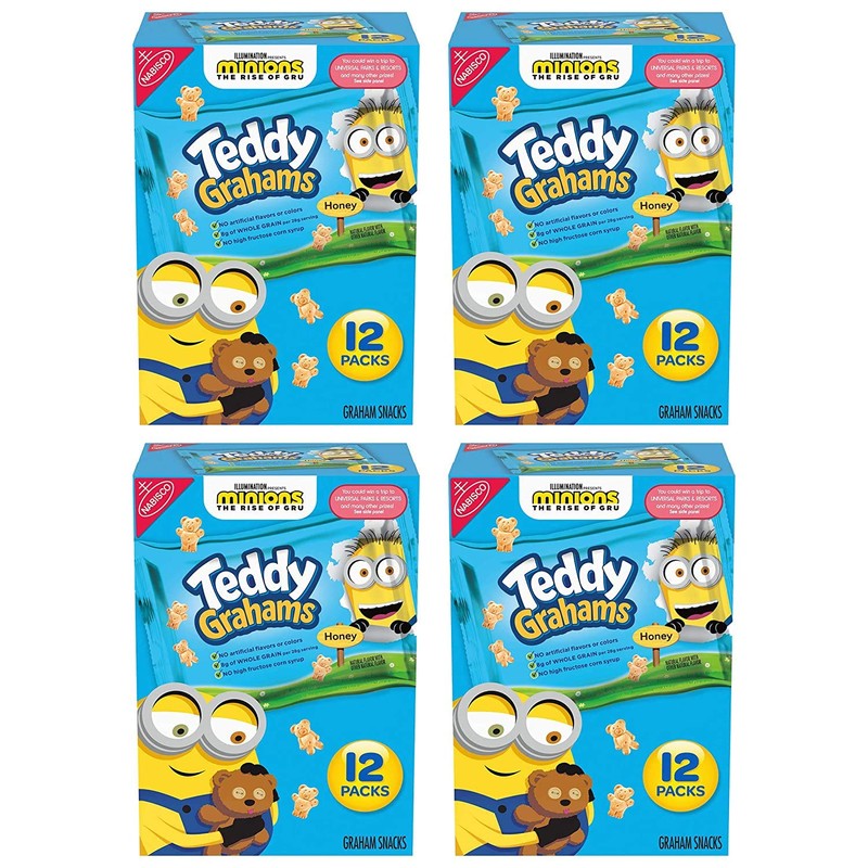 - Four boxes with 12 snack packs each, 48 total snack packs, of Teddy Grahams Honey Graham Snacks (packaging may vary)