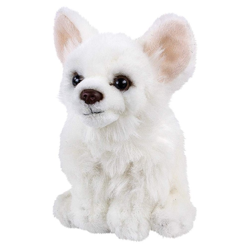 - The small, cute plush dog is 17 cm tall and fits in any bag. The Chihuahua has particularly soft, long fur and its cute ears are pointed up.