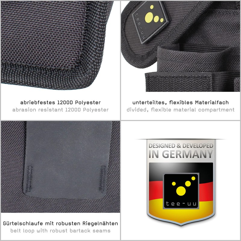 tee-uu Radio Plus Digitalfunk-Holster schwarz | für Funkgerät u. Equipment | vielseitig | komfortabel | gepolstertes Gerätefach | geeignet für Funkgeräte bis 7 x17 x 6cm | zweiteiliges Materialfach