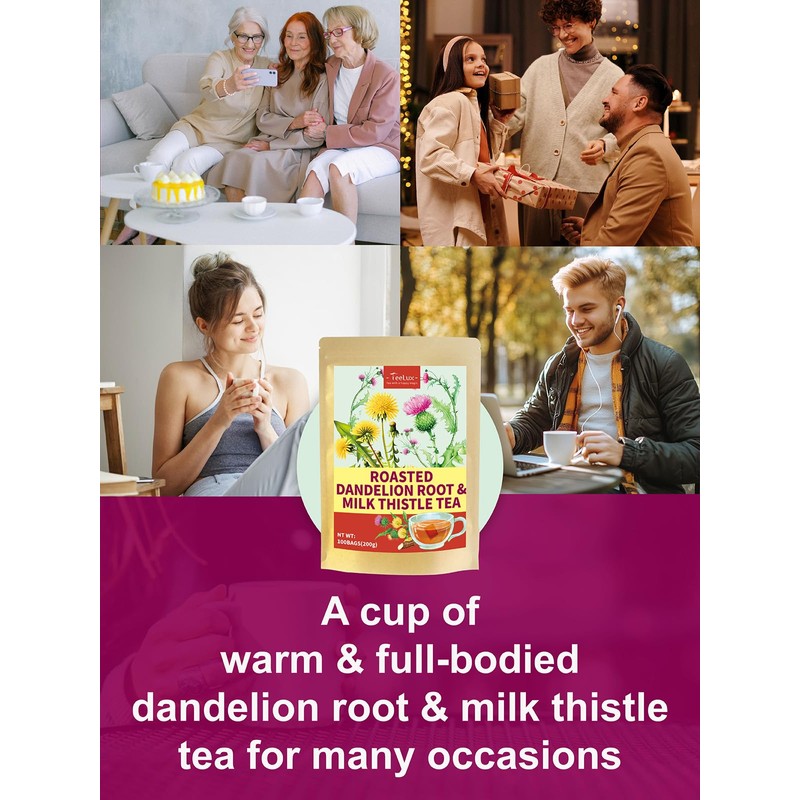 - [DELICATE BLEND TEA] - Roasted dandelion root tea contributes a roasted, slightly bitter, nutty flavor—somewhat similar to light coffee, roasted milk thistle tea adds a slightly nutty, mellow flavor with a creamy undertone, balancing the intensity of the dandelion. This makes the tea more enjoyable and palatable.