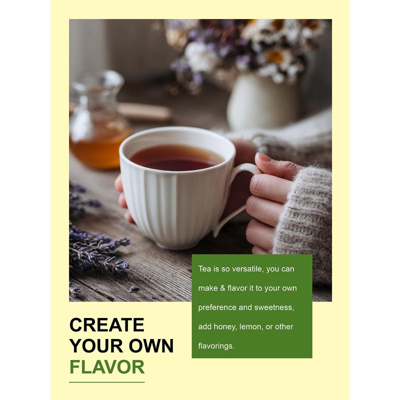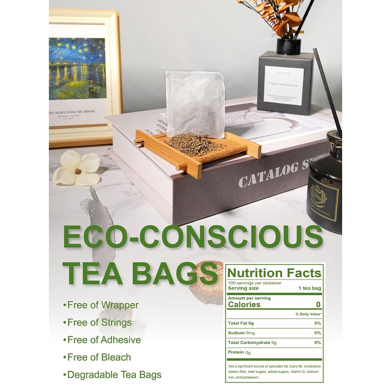 - [100 COUNT ECO-CONSCIOUS TEA BAGS] - Our premium tea bags are made from non-GMO plant fiber, and tea bags are unbleached and compostable. No string and no tag. No extra waste - just healthy & delicious tea!
