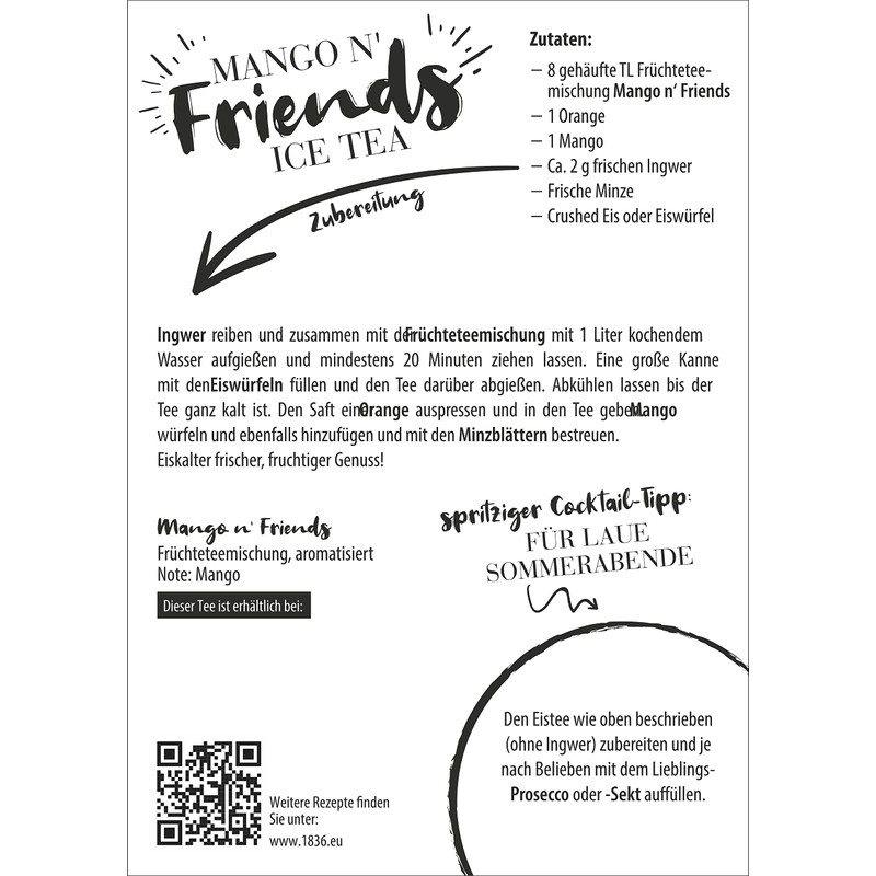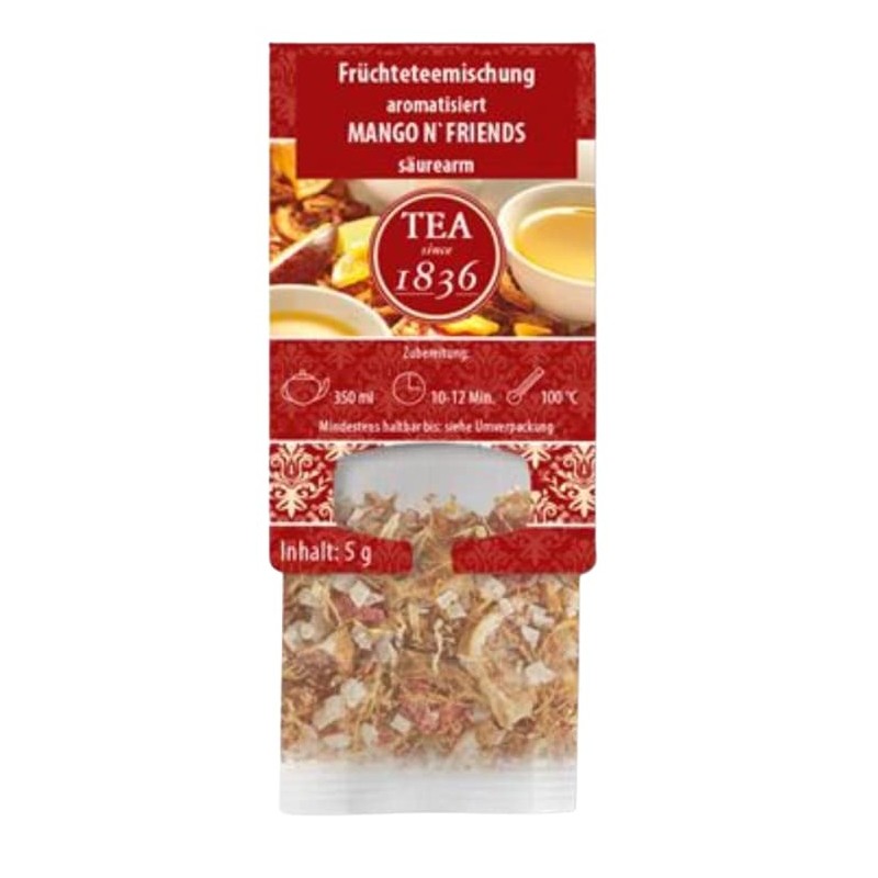 - A top-class fruit tea. Extra large flakes and cubes of juicy, exclusively exotic fruits form this low acid base. The typical taste already refined by these fruit ingredients is wonderfully complemented by a special sweet and fresh aroma combination. As an iced tea, a delight that can put many juice drinks in the shade. Even a subsequent sweetness wants to be considered.