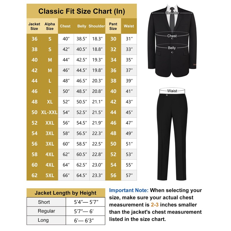 - REMINDER: After long transport, Our men's jacket suits will have some folds probably. We shall appreciate that if you will iron it before wearing, the coat will looks much better than it was. The suit set could be dry-cleaned as much as possible. Please refer to the size chart in the product images. If you are choosing between 2 sizes, we recommend to go for the bigger one.