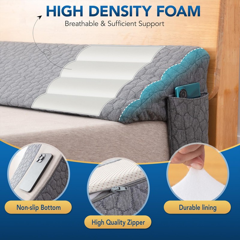 - ✔【MONEY BACK GUARANTEE】- We are confident in our bed stoppers for headboard and we offer a 30-day return/replacement service. Please contact us via amazon if you have any quality related questions about our gap filler for bed. We will try our best to make you satisfied. For a good shopping experience, please refer to your mattress gap size before choosing a wedge pillow size.