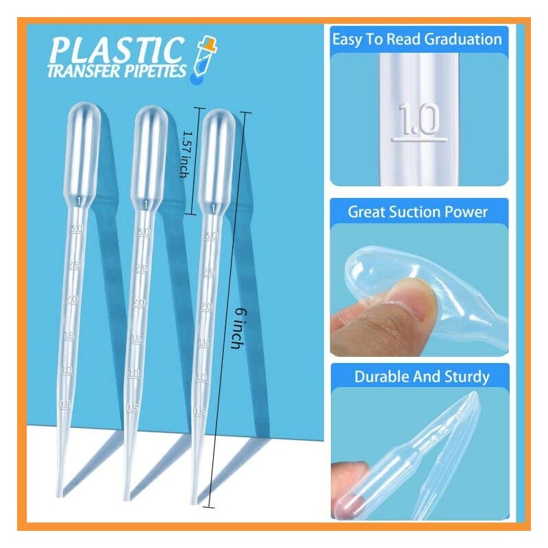 3ML Plastic Transfer Pipettes Eye Dropper useful for a variety of purposes, such as for epoxy projects, painting, and essential oils.