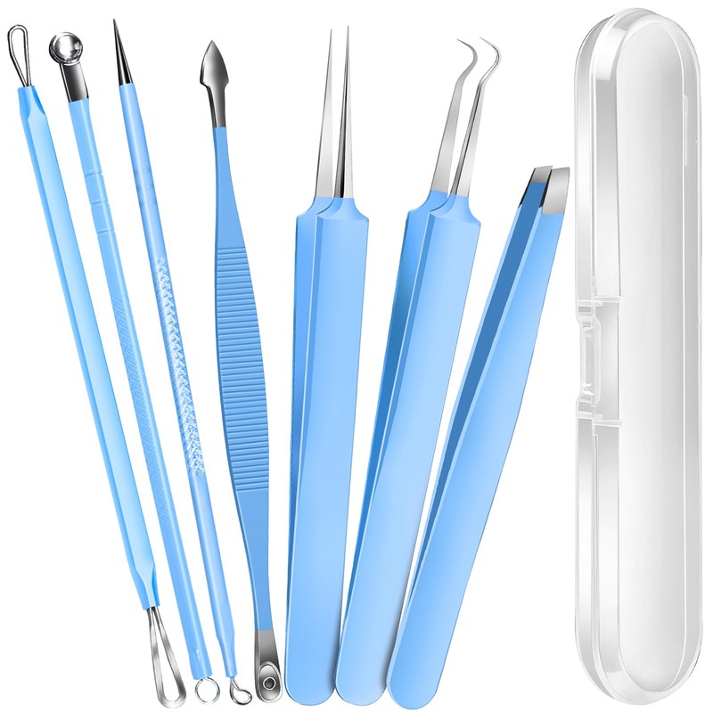 - Portable and Organized Storage: Each tool comes stored in a convenient, washable plastic case that ensures easy organization and transport. Silicone covers for precision tweezers are included, and it’s essential to use tools only on fully matured acne to minimize skin irritation