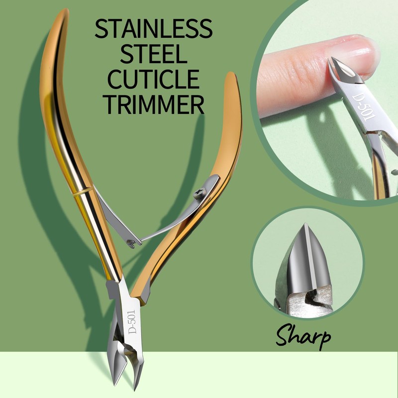 • Cuticle Trimmer with Cuticle Pusher: made of Premium Polished Stainless Steel, cuticle nippers with Jaw design which offers great grip for cutting cuticle off even in small areas around nails.Cuticle Pusher Sharp to cut or scrape away dead cuticle on one end and Curved flat end perfectly pushes the skin back flawlessly
